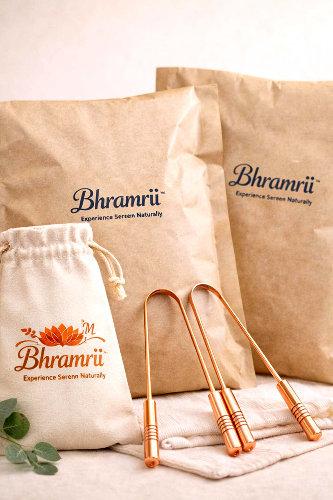 Rooted in ancient Ayurvedic wisdom, Bhramrii offers thoughtfully crafted wellness essentials made from natural and sustainable materials. From our 100% pure copper tongue cleaner that supports fresher breath and better oral hygiene to natural loofahs, toothbrushes, hairbrushes, and other everyday self-care tools, each product is designed to make your daily rituals healthier, simpler, and more mindful — naturally and effectively.